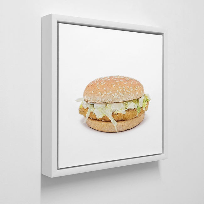 McChicken® Sandwich, 2023 Coated Chicken Patty, Sesame Bun, Lettuce (Iceberg) and Sandwich Sauce. Oil Paint on Linen, 350 x 350mm